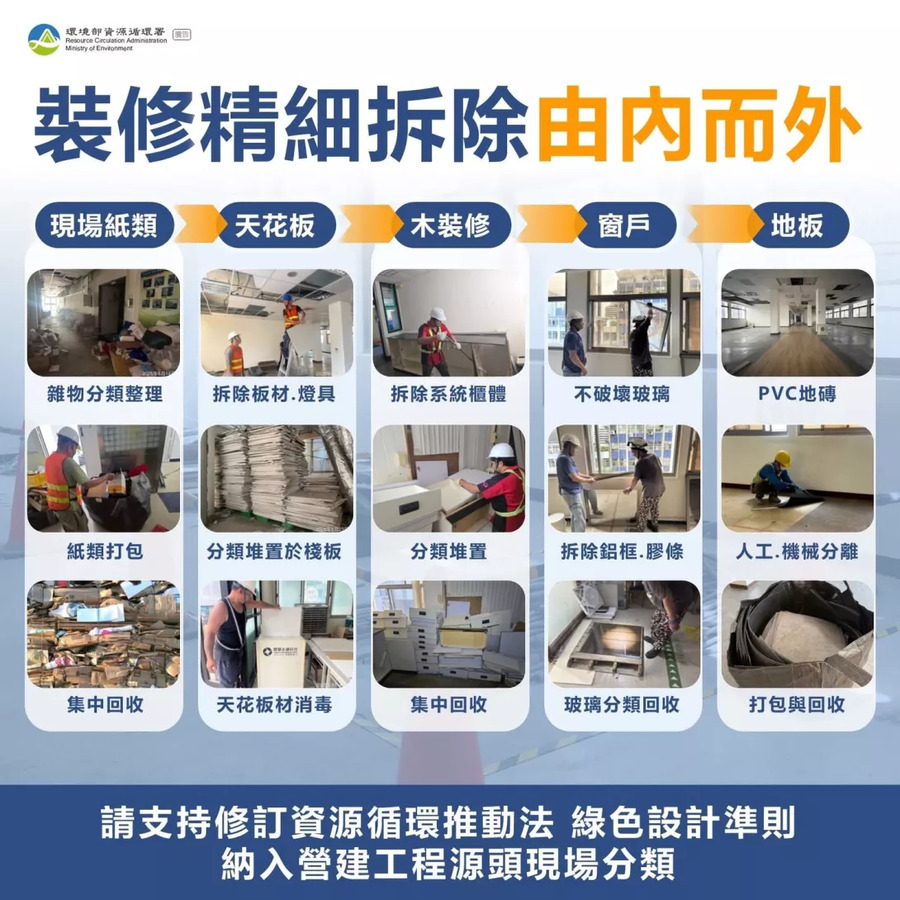 ▲ 裝修精細拆除由內而外:把「拆」做成分類流程(資料來源:環境部資源循環署)